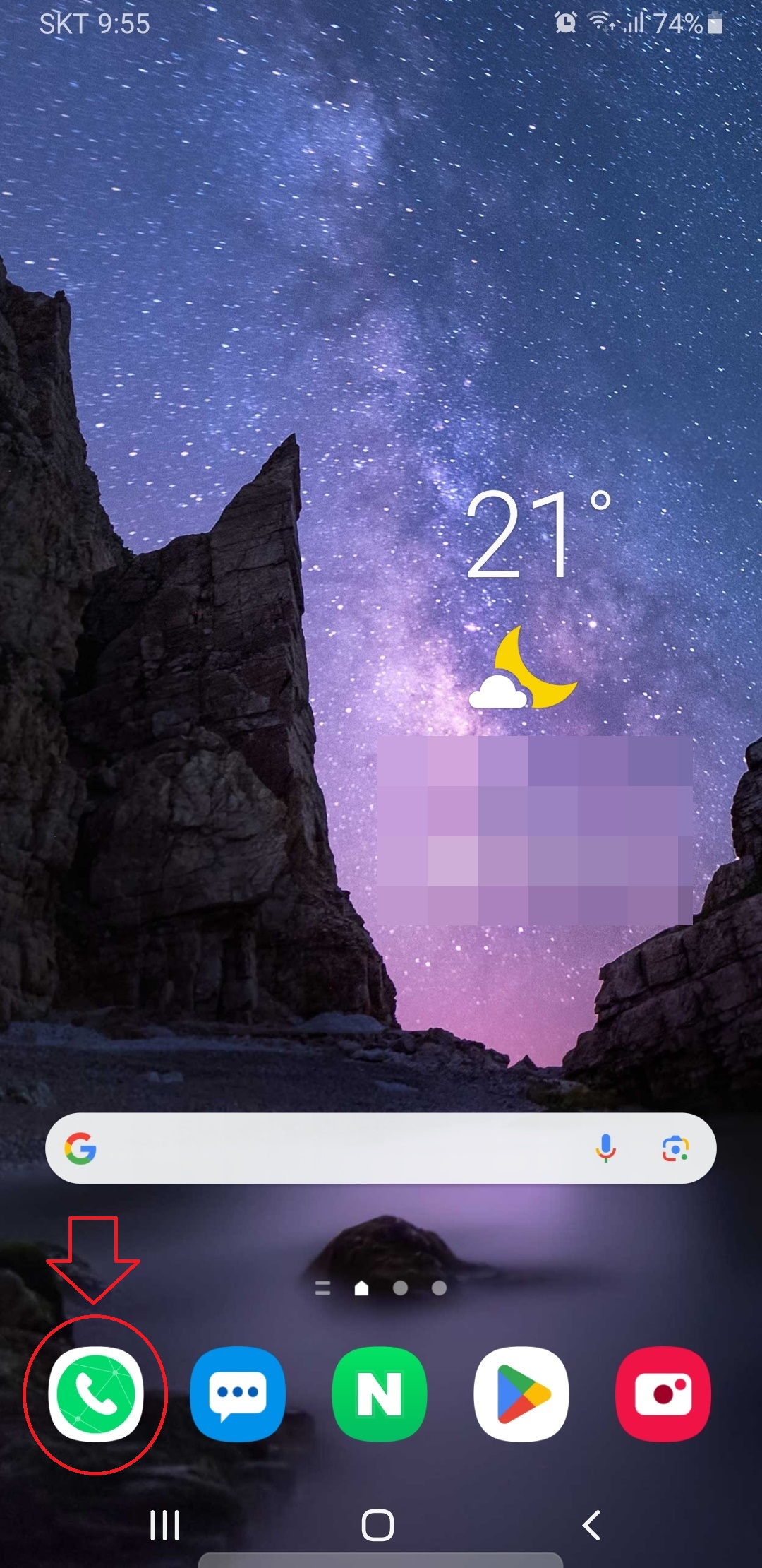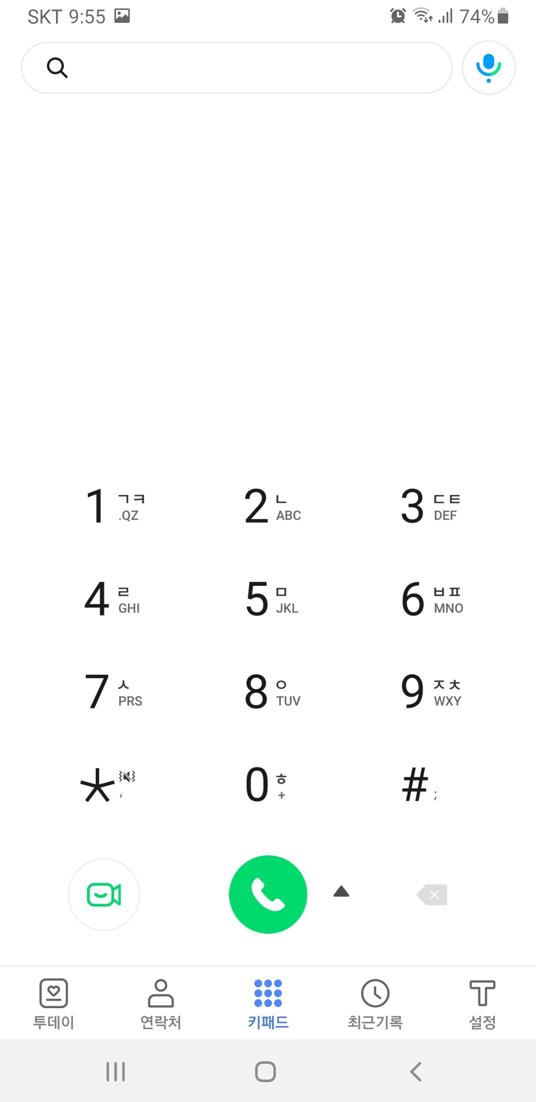 먼저 스마트폰 화면에서 전화 어플을 터치합니다. 키패드가 다음 그림처럼 열립니다.