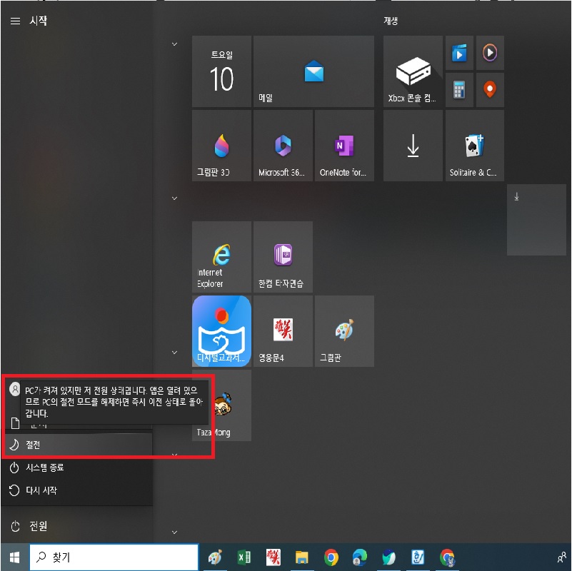 컴퓨터가 다시 켜져도 이전 작업상태로 되돌아 가지 못합니다. 반면에 절전(=최대절전)모드는 사용하던 인터넷 사이트, 문서작업 도구, 그림편집 도구 등이 절전 직전 작업상태 상태 그대로 남아있습니다. 장시간 자리 이탈시 불필요한 전기 낭비를 줄이면서 업무효율성을 높이는데 사용하는 기능이라고 보시면 됩니다. 이번 포스팅으로 전기료를 절약하는데 도움이 되었으면 합니다. 이상으로 글을 마치겠습니다.