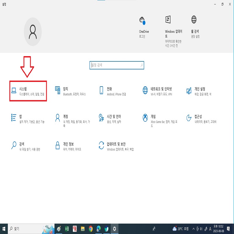 보이는것 처럼 설정모드 창이 열리면 시스템을 클릭합니다. 설정모드에는 여러가지 기능을 변경 할 수 있습니다.